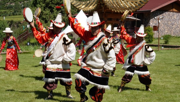 甘南卓尼“一線天”吸客 “巴郎鼓”舞展人文風光