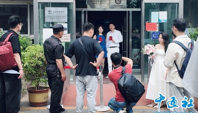 “早晨八點開放登記,昨天凌晨四點開始排隊,今天第一對新人一點就到了。”北京市西城區民政局結婚登記處,攝影師黎強(化名)向記者分享道。近兩日,他的結婚登記跟拍訂單量猛增。