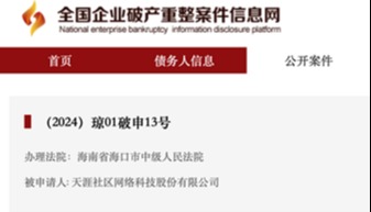 中國商業查詢平台“天眼查”顯示,天涯社區網絡科技股份有限公司26日新增一則破產審查案件,申請人為張鑫,經辦法院為海南省海口市中級人民法院。27日,天涯社區官網已顯示“無法訪問此頁面”。