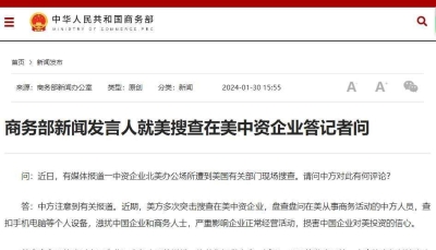 在美中資企業遭到美方現場搜查,中國商務部回應