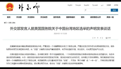 中國外交部就美國國務院關於中國台灣地區選舉的聲明發表談話