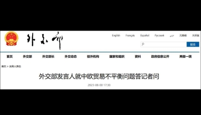 據中國外交部網站8月8日消息,外交部發言人就中歐貿易不平衡問題答記者問。