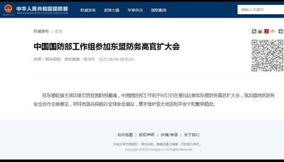據中國國防部網站消息,應東盟輪值主席印度尼西亞國防部邀請,中國國防部工作組於8月3日在雅加達參加東盟防務高官擴大會,就加強地區防務安全合作交換意見,呼籲各國共同踐行全球安全倡議,攜手維護亞太地區和平安寧和繁榮穩定。