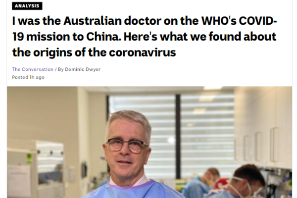 澳大利亞廣播公司(ABC)網站2月21日刊發澳大利亞傳染病和微生物學家多米尼克·德懷爾的文章,詳細回顧了世衛專家組新冠病毒全球溯源中國部分的工作過程,以親身經歷批駁了抹黑中國的言論,再次明確表明新冠病毒源頭並非一定在武漢海鮮市場,病毒也極不可能自實驗室泄露。 作者開宗明義指出,關於世衛組織調查新冠病毒起源任務背後所謂的政治因素,外界已經炒的沸沸揚揚。 世衛組織派出的國際專家組於1月14日抵達武漢,與中方專家組...
