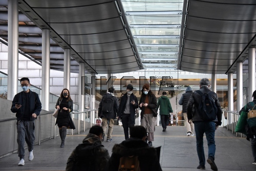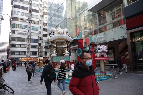 1月12日,香港新增60宗新冠肺炎確診個案,均為本地個案,無輸入個案,其中13宗無源頭感染個案,有近30宗初步確診個案。圖為香港中環市民戴口罩出行。(香港中通社 許其皓攝) 香港中通社圖片