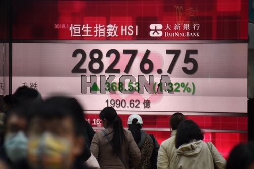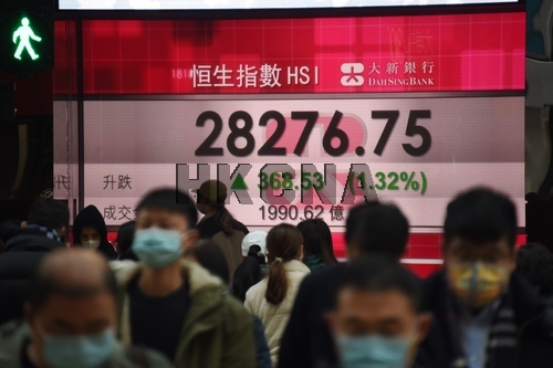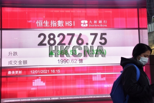 1月12日,截至收盤,香港恒生指數漲368.53點,漲幅1.32%,報28276.75點,主板全天成交1990.62億港元。(香港中通社 許其皓攝) 香港中通社圖片 [1] [2] [3] [下一页]