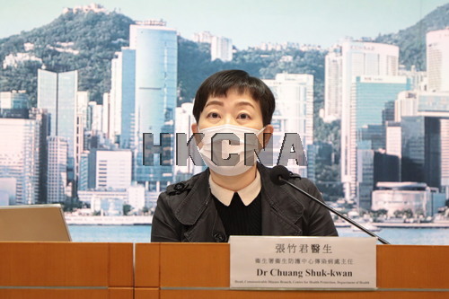 1月7日,香港新增33宗新冠肺炎個案,本地感染有29宗,輸入個案有4宗。本地個案中,有5宗源頭不明,24宗與其他個案相關。圖為醫院管理局總行政經理(醫療成效及科技管理)庾慧玲醫生出席記者會。 (香港中通社記者張海德攝) 香港中通社圖片 [上一页] [1] [2] [3] [4]