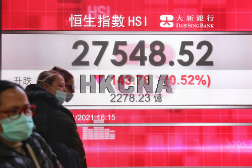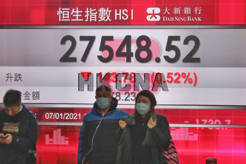 1月7日,截至收盤,香港恒生指數跌143.78點,跌幅0.52%,報27548.52點,主板全天成交2278.23億港元。(香港中通社記者 謝光磊 攝) 香港中通社圖片 [上一页] [1] [2] [3]
