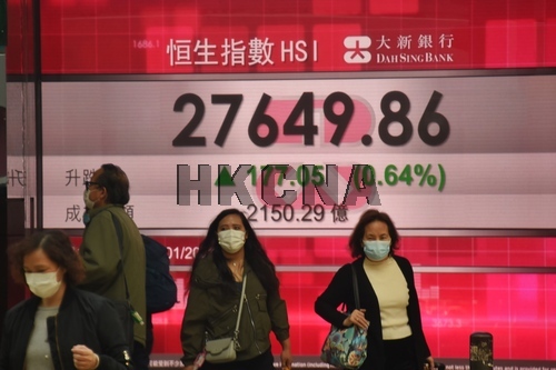 1月5日,截至收盤,香港恒生指數漲177.05點,漲幅0.64%,報27649.86點,主板全天成交2150.29億港元。(香港中通社 許其皓攝) 香港中通社圖片 [1] [2] [3] [下一页]