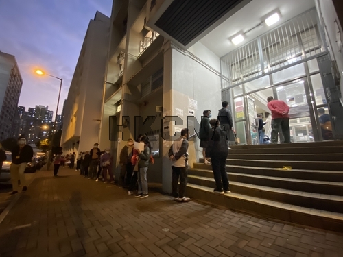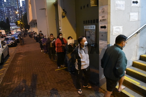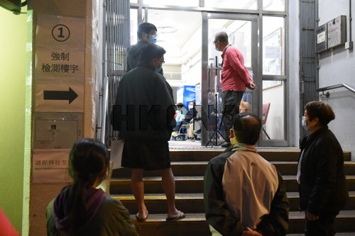 香港強制檢測樓宇的居民在排隊接受檢測(5)