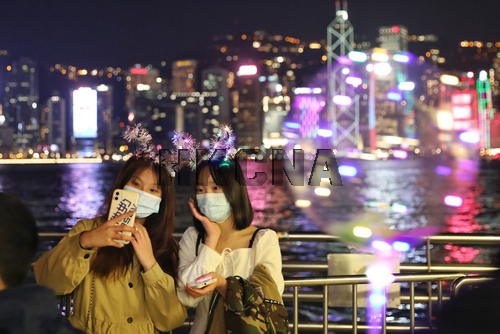 疫情寒潮下香港市民外出迎新年 尖沙咀人頭湧湧(2)