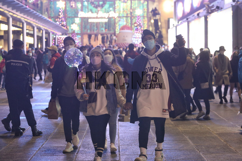 疫情寒潮下香港市民外出迎新年 尖沙咀人頭湧湧(7)