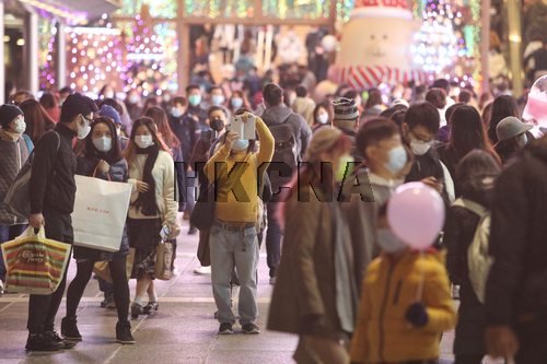 疫情寒潮下香港市民外出迎新年 尖沙咀人頭湧湧(5)