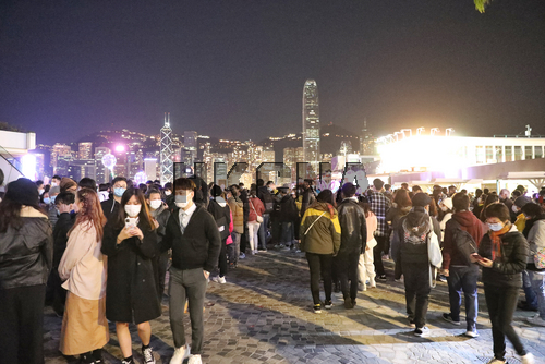 疫情寒潮下香港市民外出迎新年 尖沙咀人頭湧湧