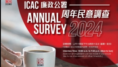 香港廉政公署將於10月14日展開新一輪周年民意調查,了解市民對廉潔社會的態度及貪污問題的認知。