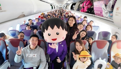 香港快運富士山靜岡機場首航 櫻桃小丸子“來港”向旅客派禮品