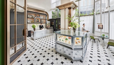廣州文華東方酒店旗下的文華餅店重新開業,室內設計以19世紀英倫藝術風格爲主,借高樓底空間向嶺南建築致敬。