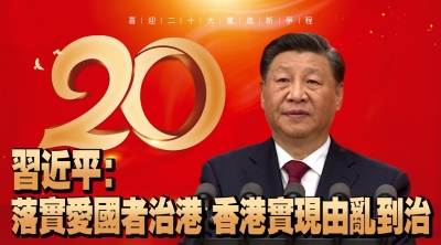 中共二十大|習近平:落實愛國者治港 香港局勢實現由亂到治的重大轉折