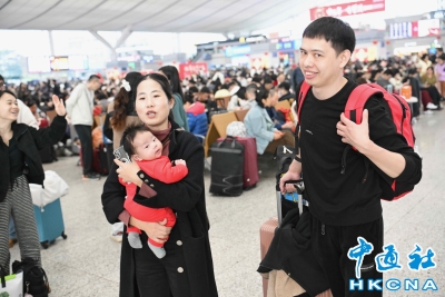 農曆新年臨近,大批香港市民北上探親、旅遊,西九龍高鐵站迎來大批人流。