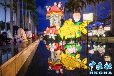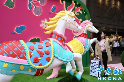 春節臨近,香港街頭節日氣氛漸濃。1月24日,香港尖沙咀一處新春裝飾吸引市民打卡。